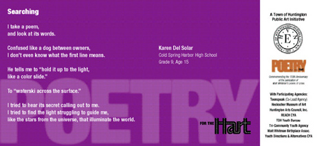 Description: Teen poem printed on laminated placards and displayed in the interior ad spaces of selected buses in the HART system.