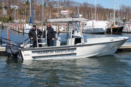 In the photo: Senior Bay Constable Fred Uvena and Senior Harbormaster Ryan Sammis on the new patrol boat.